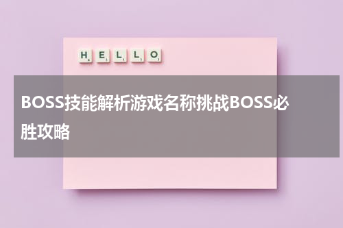 在游戏中,BOSS技能解析是指对游戏中的BOSS角色的技能进行分析和解释。这样的攻略能够帮助玩家更好地了解BOSS的攻击方式和技能特点,从而制定出更有效的战斗策略,提高战胜BOSS的成功率。游戏名称挑战BOSS必胜攻略是指在面对特定游戏中的BOSS时,提供一系列必胜的战斗策略和技巧。通过遵循这些攻略,玩家可以更有效地击败BOSS,顺利过关。这些攻略对于玩家来说是非常有价值的,能够帮助他们在游戏中取得胜利。